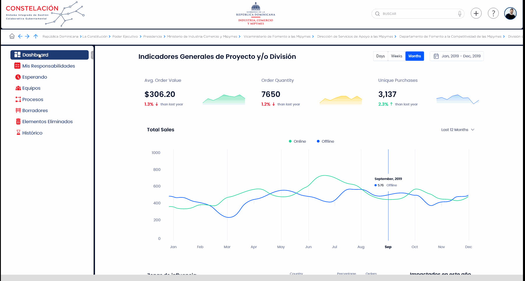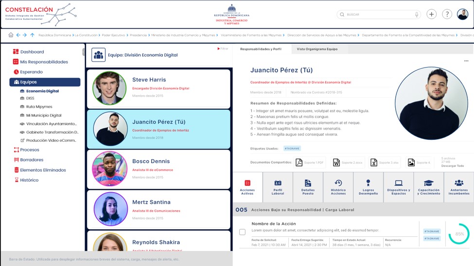 Permite moverse con total claridad por los diversos departamentos y direcciones que componen una institución, así como también navegar de un proyecto a otro y de una institución a otra, permitiendo que las gestiones que se realizan con la colaboración de múltiples instituciones puedan ser visualizadas en un mismo espacio colaborativo.