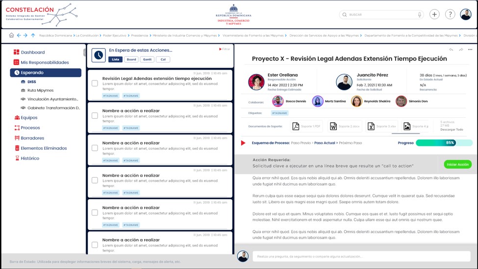 En una interfaz similar a la de responsabilidades, los colaboradores pueden ver rápidamente el estatus de todos los temas que esperan por la acción de otros colaboradores para seguir su proceso de avance.